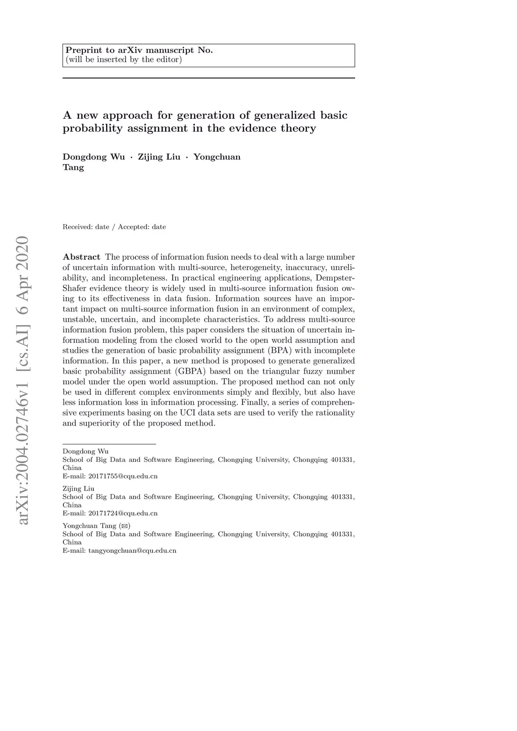 The process of information fusion needs to deal with a large number of uncertain information with multi-source, heterogeneity, inaccuracy, unreliability, and incompleteness. In practical engineering applications, Dempster-Shafer evidence theory is widely used in multi-source information fusion owing to its effectiveness in data fusion. Information sources have an important impact on multi-source information fusion in an environment of complex, unstable, uncertain, and incomplete characteristics. To address multi-source information fusion problem, this paper considers the situation of uncertain information modeling from the closed world to the open world assumption and studies the generation of basic probability assignment (BPA) with incomplete information. In this paper, a new method is proposed to generate generalized basic probability assignment (GBPA) based on the triangular fuzzy number model under the open world assumption. The proposed method can not only be used in different complex environments simply and flexibly, but also have less information loss in information processing. Finally, a series of comprehensive experiments basing on the UCI data sets are used to verify the rationality and superiority of the proposed method.