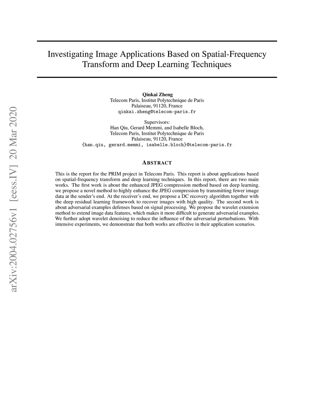 This is the report for the PRIM project in Telecom Paris. This report is about applications based on spatial-frequency transform and deep learning techniques. In this report, there are two main works. The first work is about the enhanced JPEG compression method based on deep learning. we propose a novel method to highly enhance the JPEG compression by transmitting fewer image data at the sender's end. At the receiver's end, we propose a DC recovery algorithm together with the deep residual learning framework to recover images with high quality. The second work is about adversarial examples defenses based on signal processing. We propose the wavelet extension method to extend image data features, which makes it more difficult to generate adversarial examples. We further adopt wavelet denoising to reduce the influence of the adversarial perturbations. With intensive experiments, we demonstrate that both works are effective in their application scenarios.