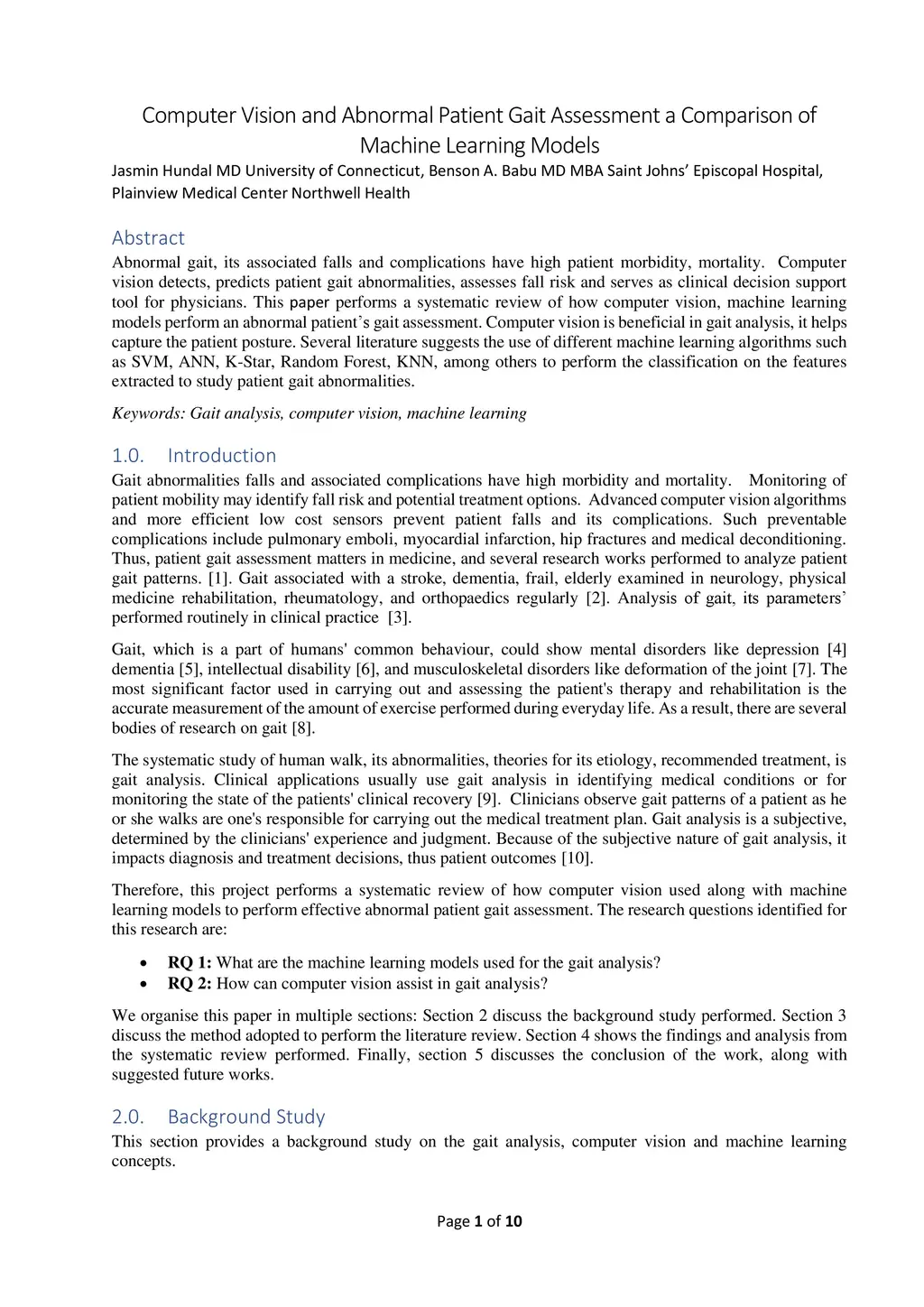 Computer Vision and Abnormal Patient Gait Assessment a Comparison of