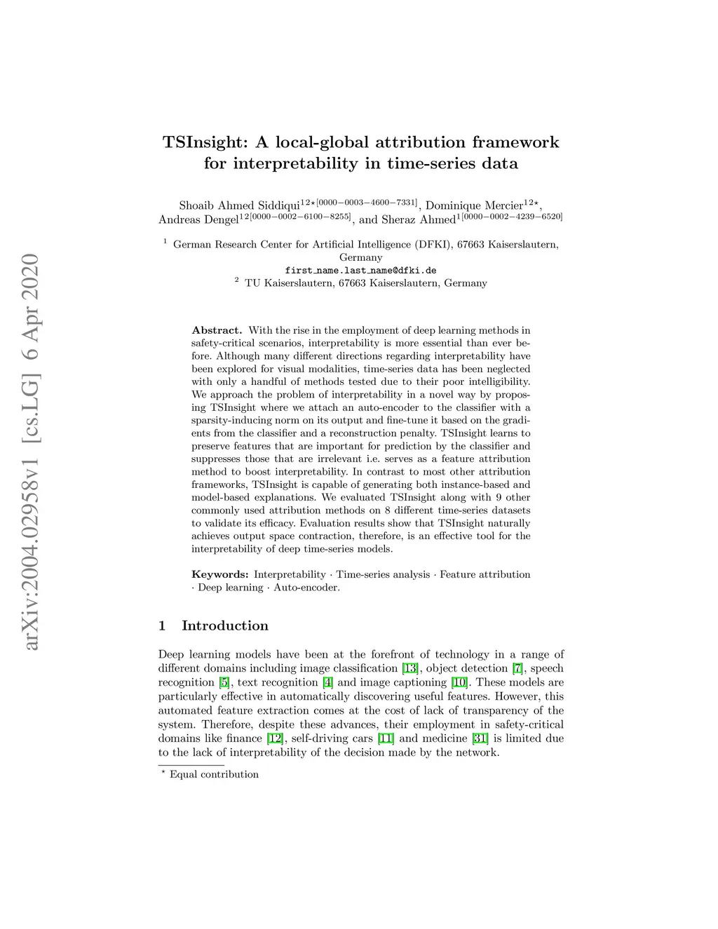 With the rise in the employment of deep learning methods in safety-critical scenarios, interpretability is more essential than ever before. Although many different directions regarding interpretability have been explored for visual modalities, time-series data has been neglected with only a handful of methods tested due to their poor intelligibility. We approach the problem of interpretability in a novel way by proposing TSInsight where we attach an auto-encoder to the classifier with a sparsity-inducing norm on its output and fine-tune it based on the gradients from the classifier and a reconstruction penalty. TSInsight learns to preserve features that are important for prediction by the classifier and suppresses those that are irrelevant i.e. serves as a feature attribution method to boost interpretability. In contrast to most other attribution frameworks, TSInsight is capable of generating both instance-based and model-based explanations. We evaluated TSInsight along with 9 other commonly used attribution methods on 8 different time-series datasets to validate its efficacy. Evaluation results show that TSInsight naturally achieves output space contraction, therefore, is an effective tool for the interpretability of deep time-series models.