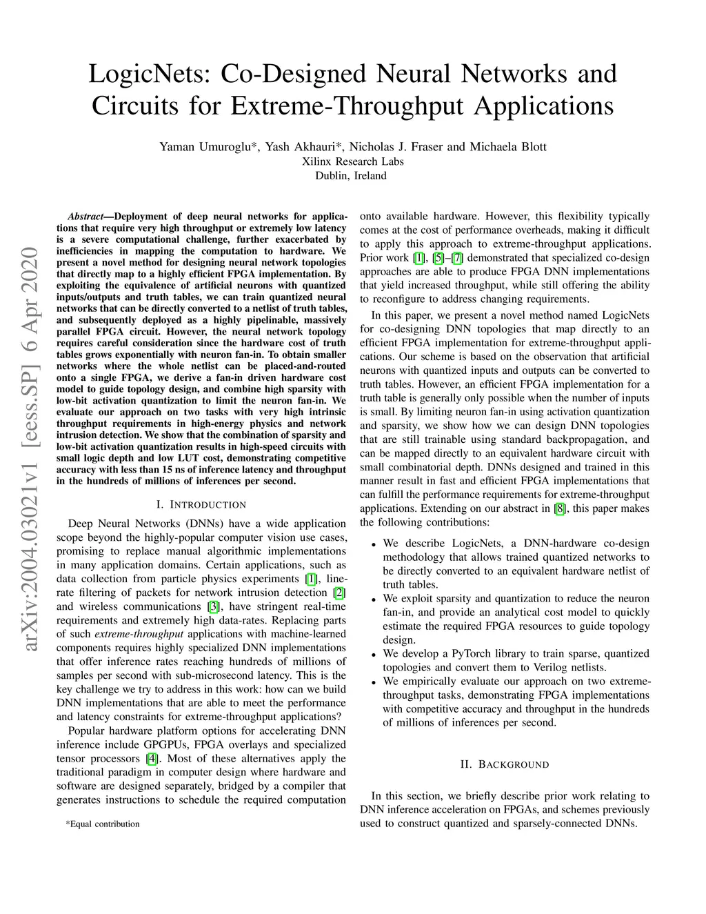 LogicNets: Co-Designed Neural Networks and Circuits for