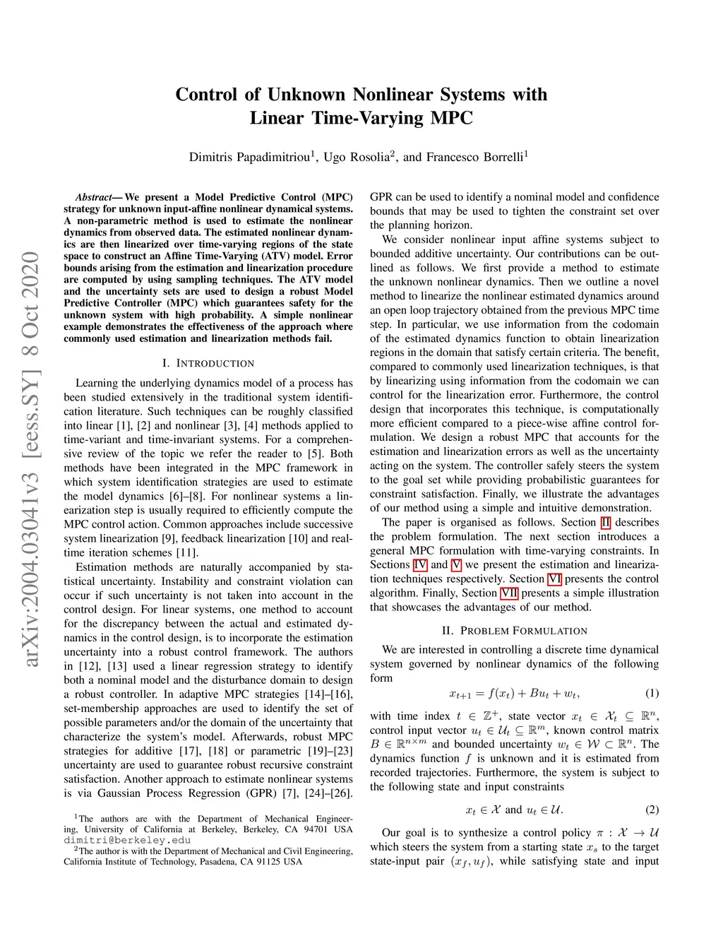 We present a Model Predictive Control (MPC) strategy for unknown input-affine nonlinear dynamical systems. A non-parametric method is used to estimate the nonlinear dynamics from observed data. The estimated nonlinear dynamics are then linearized over time varying regions of the state space to construct an Affine Time Varying (ATV) model. Error bounds arising from the estimation and linearization procedure are computed by using sampling techniques. The ATV model and the uncertainty sets are used to design a robust Model Predictive Control (MPC) problem which guarantees safety for the unknown system with high probability. A simple nonlinear example demonstrates the effectiveness of the approach where commonly used linearization methods fail.