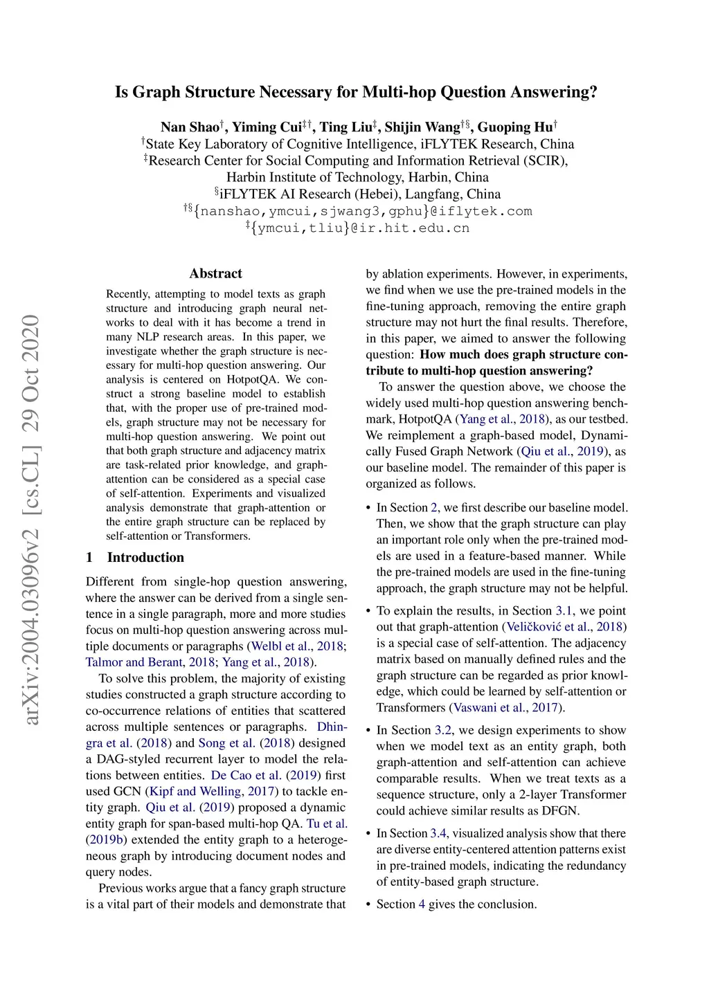 Recently, many works attempt to model texts as graph structure and introduce graph neural networks to deal with it on many NLP tasks.In this paper, we investigate whether graph structure is necessary for multi-hop reasoning tasks and what role it plays. Our analysis is centered on HotpotQA. We use the state-of-the-art published model, Dynamically Fused Graph Network (DFGN), as our baseline. By directly modifying the pre-trained model, our baseline model gains a large improvement and significantly surpass both published and unpublished works. Ablation experiments established that, with the proper use of pre-trained models, graph structure may not be necessary for multi-hop reasoning. We point out that both the graph structure and the adjacency matrix are task-related prior knowledge, and graph-attention can be considered as a special case of self-attention. Experiments demonstrate that graph-attention or the entire graph structure can be replaced by self-attention or Transformers, and achieve similar results to the previous state-of-the-art model achieved.