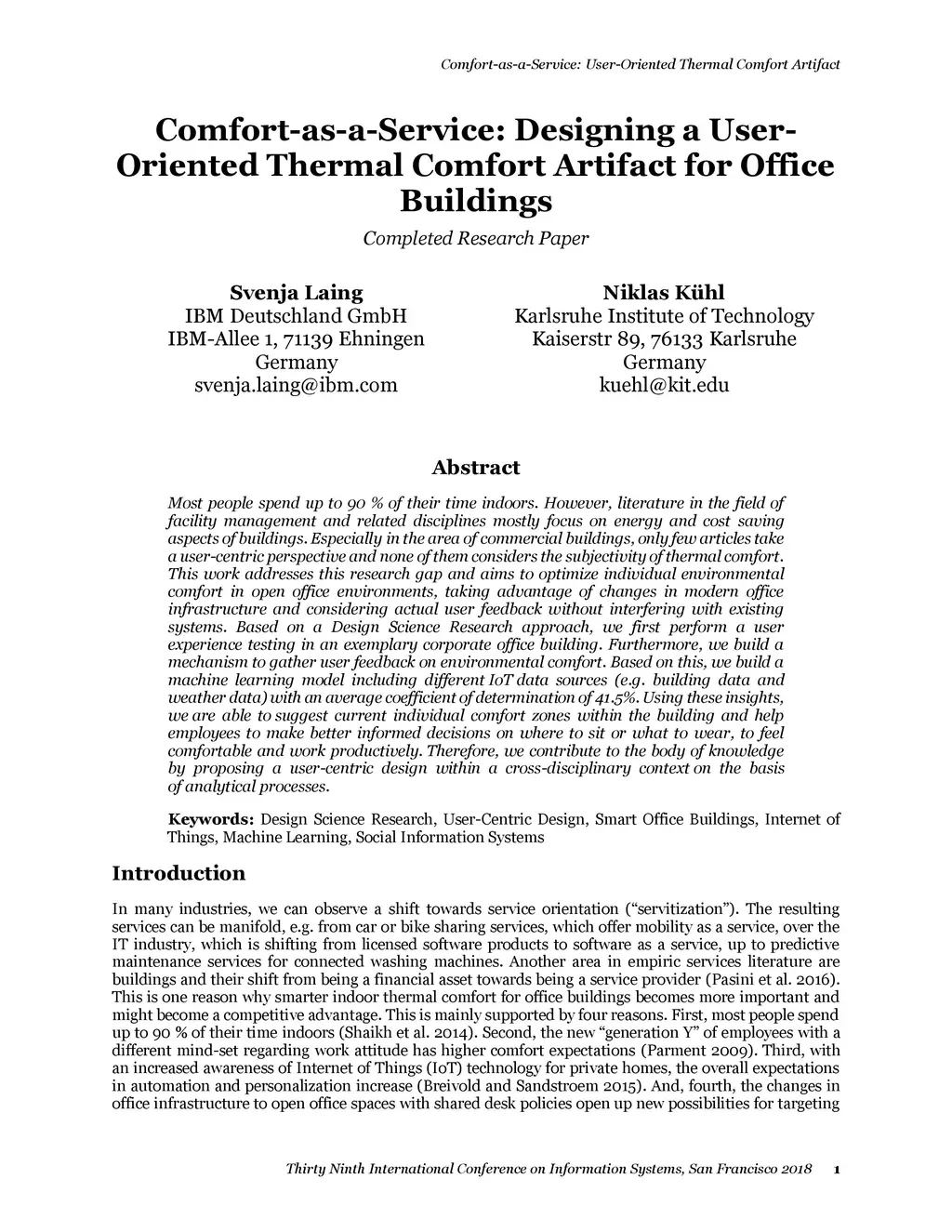 Comfort-as-a-Service: Designing a User-Oriented Thermal Comfort Artifact