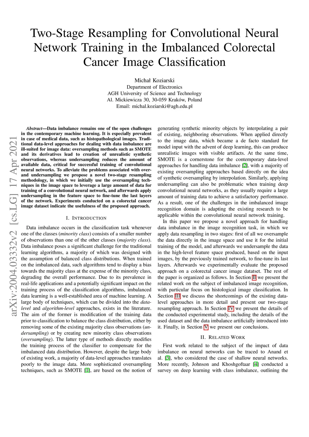 Two-Stage Resampling for Convolutional Neural Network Training in the