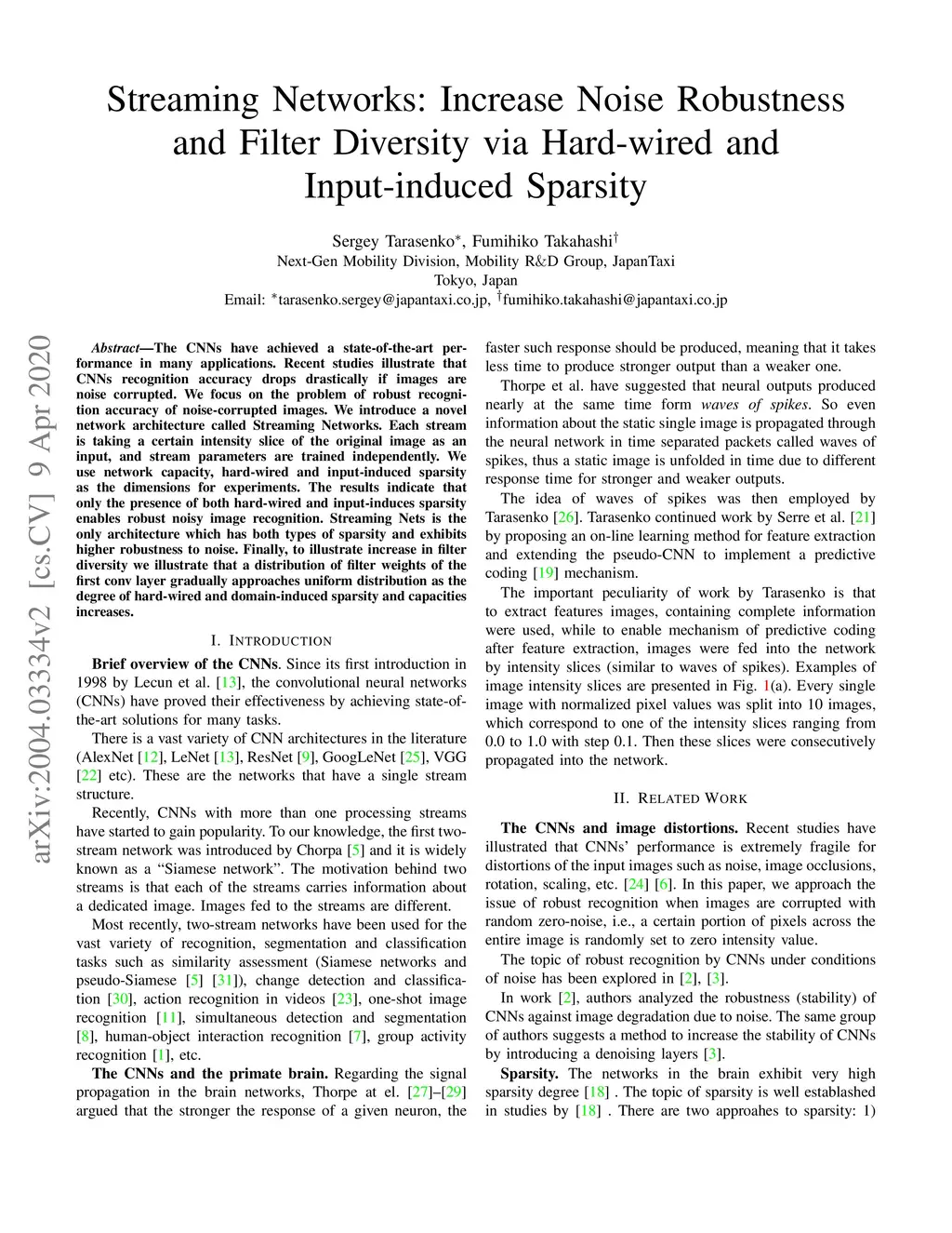 The CNNs have achieved a state-of-the-art performance in many applications. Recent studies illustrate that CNN's recognition accuracy drops drastically if images are noise corrupted. We focus on the problem of robust recognition accuracy of noise-corrupted images. We introduce a novel network architecture called Streaming Networks. Each stream is taking a certain intensity slice of the original image as an input, and stream parameters are trained independently. We use network capacity, hard-wired and input-induced sparsity as the dimensions for experiments. The results indicate that only the presence of both hard-wired and input-induces sparsity enables robust noisy image recognition. Streaming Nets is the only architecture which has both types of sparsity and exhibits higher robustness to noise. Finally, to illustrate increase in filter diversity we illustrate that a distribution of filter weights of the first conv layer gradually approaches uniform distribution as the degree of hard-wired and domain-induced sparsity and capacities increases.