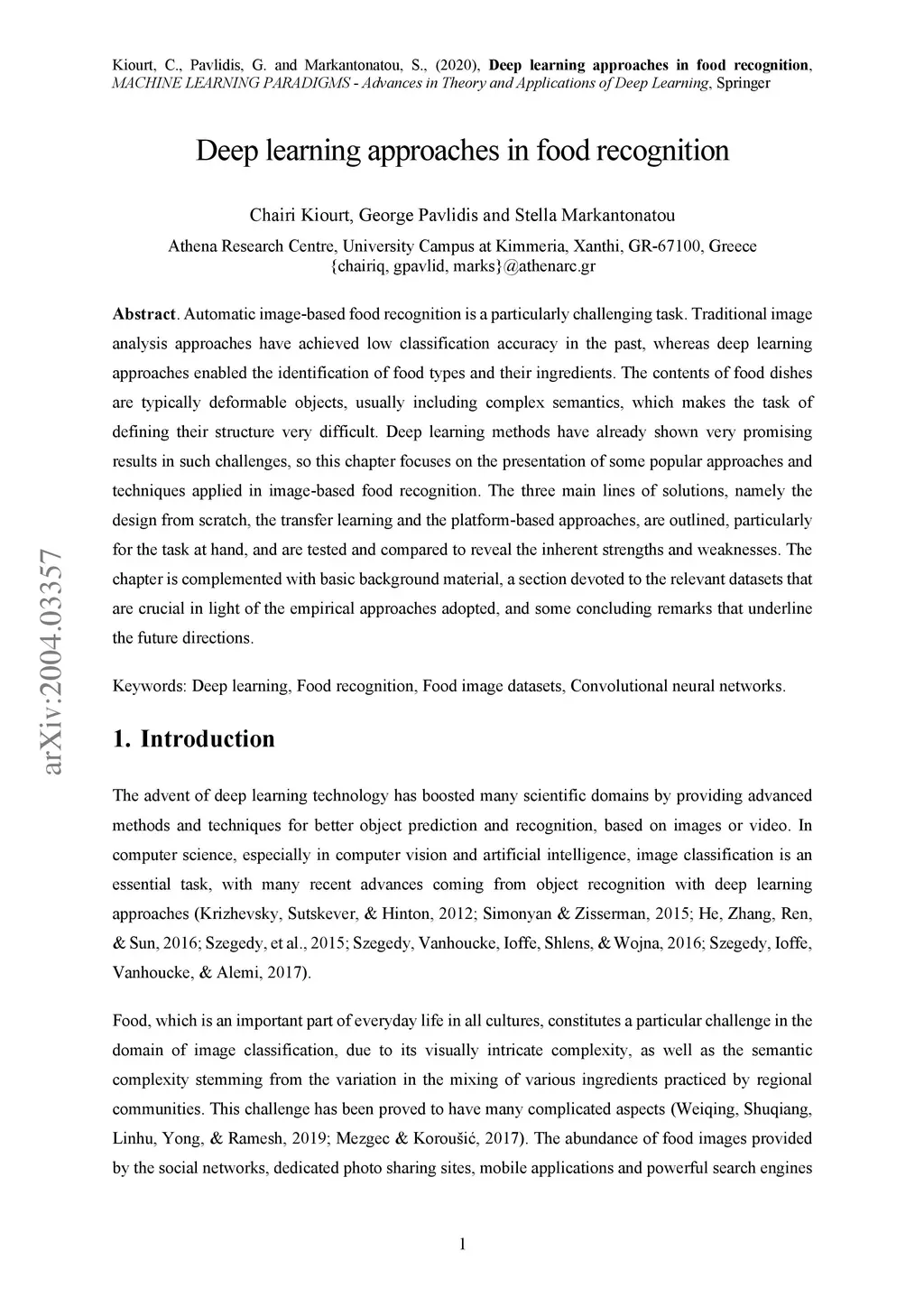 Deep learning approaches in food recognition