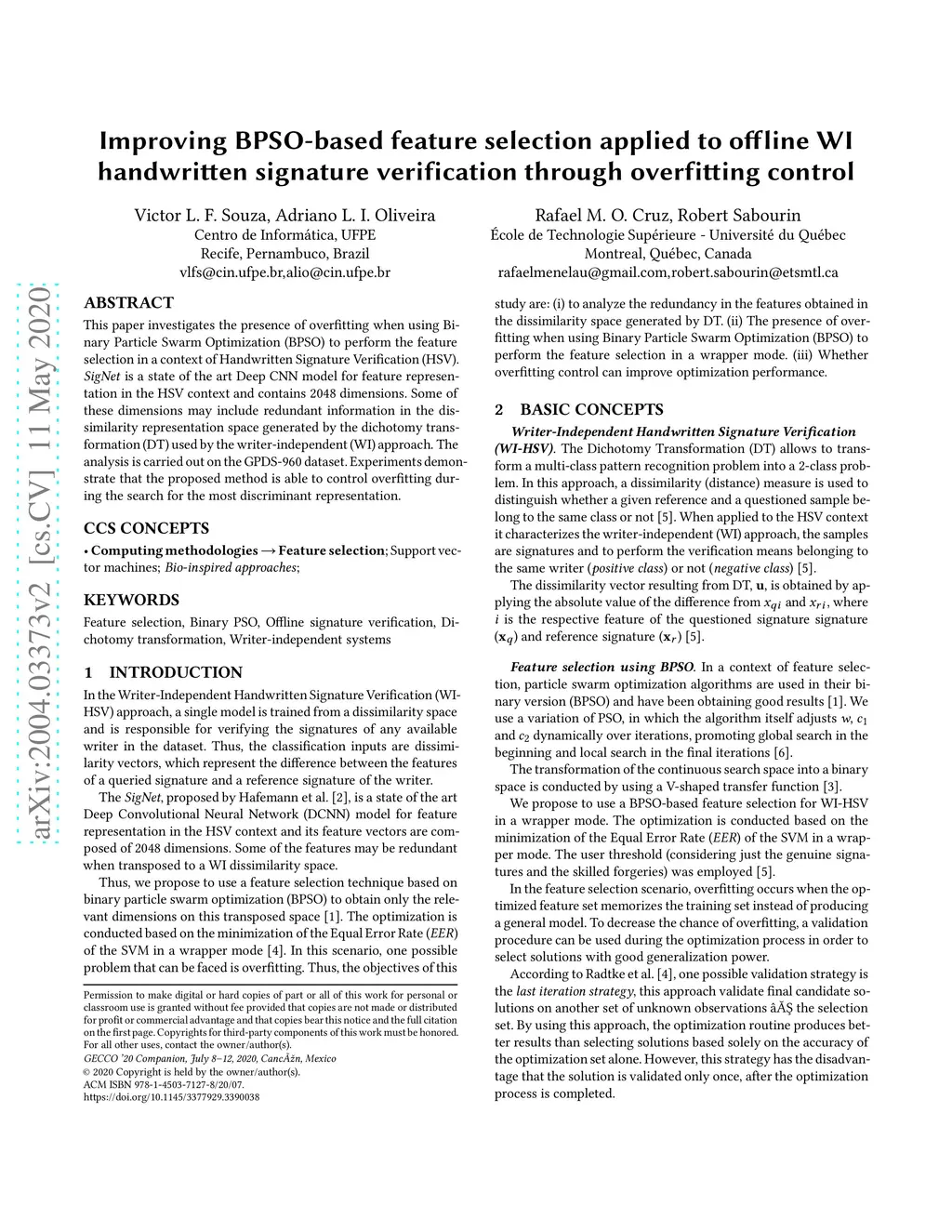 Improving BPSO-based feature selection applied to offline WI handwritten