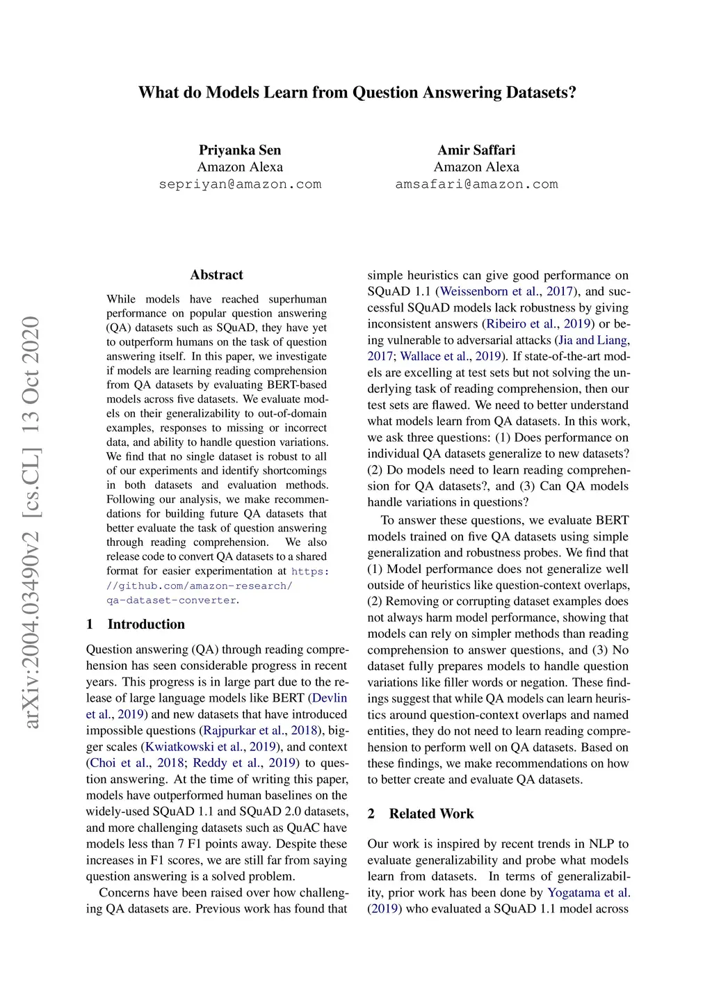 While models have reached superhuman performance on popular question answering (QA) datasets such as SQuAD, they have yet to outperform humans on the task of question answering itself. In this paper, we investigate what models are really learning from QA datasets by evaluating BERT-based models across five popular QA datasets. We evaluate models on their generalizability to out-of-domain examples, responses to missing or incorrect information in datasets, and ability to handle variations in questions. We find that no single dataset is robust to all of our experiments and identify shortcomings in both datasets and evaluation methods. Following our analysis, we make recommendations for building future QA datasets that better evaluate the task of question answering.