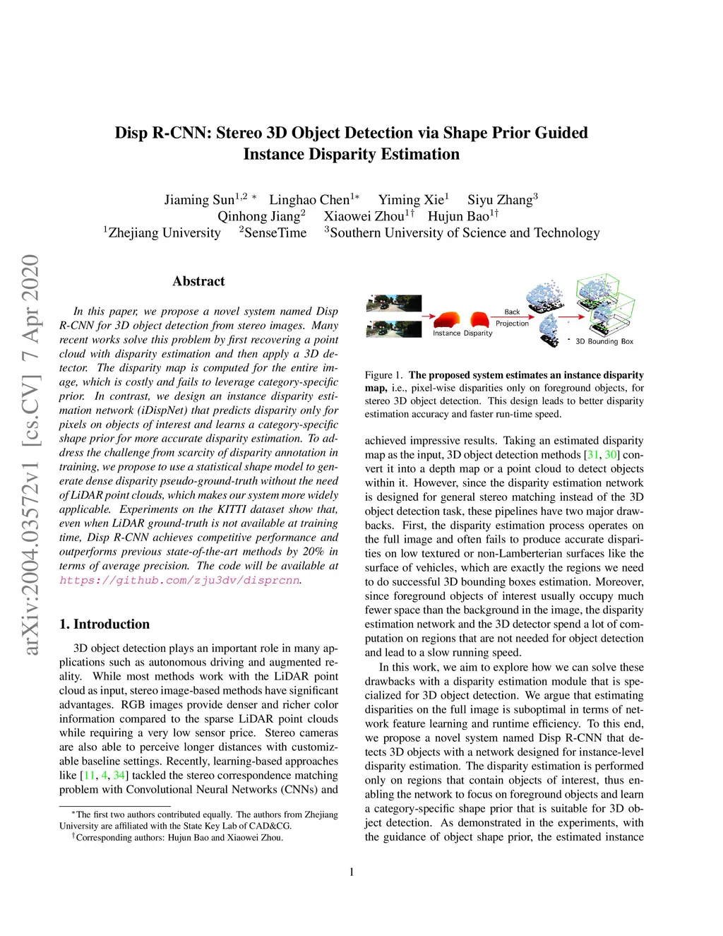 Disp R-CNN: Stereo 3D Object Detection via Shape Prior Guided Instance