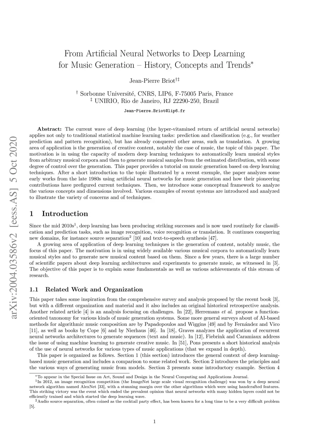 From Artificial Neural Networks to Deep Learning for Music Generation --