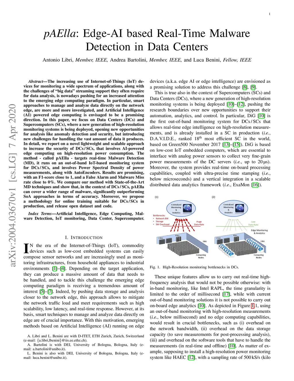 pAElla: Edge-AI based Real-Time Malware Detection in Data Centers