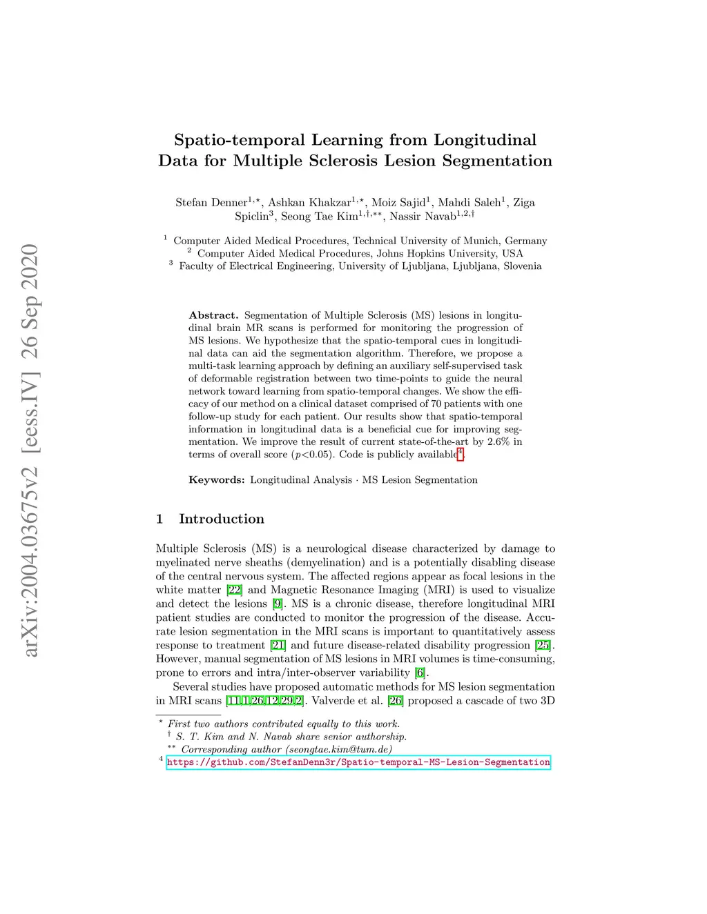 Spatio-temporal Learning from Longitudinal Data for Multiple Sclerosis