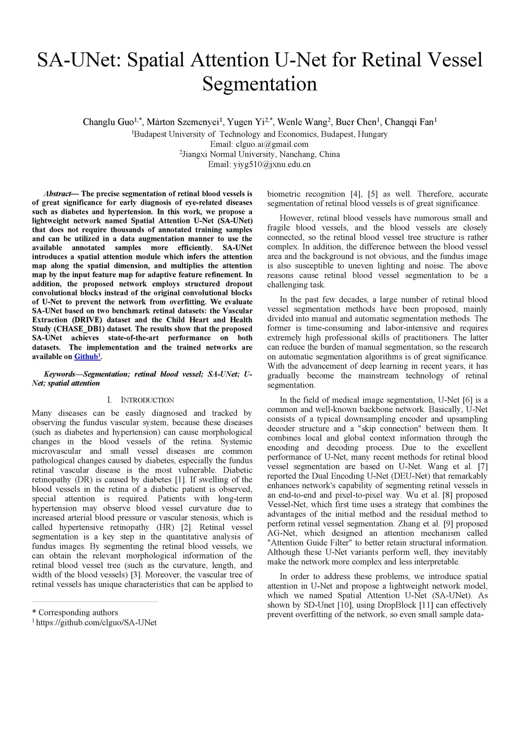 SA-UNet: Spatial Attention U-Net for Retinal Vessel Segmentation