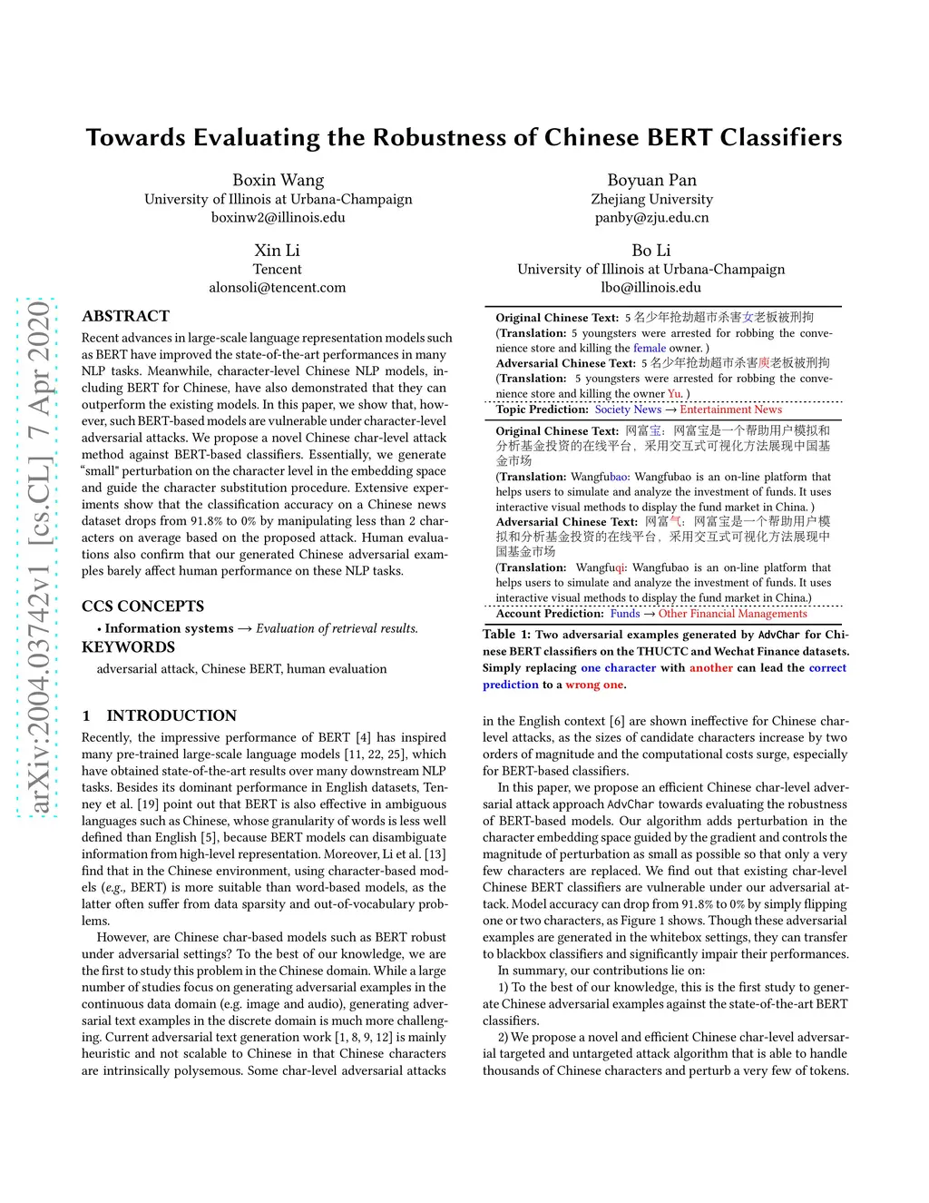 Towards Evaluating the Robustness of Chinese BERT Classifiers