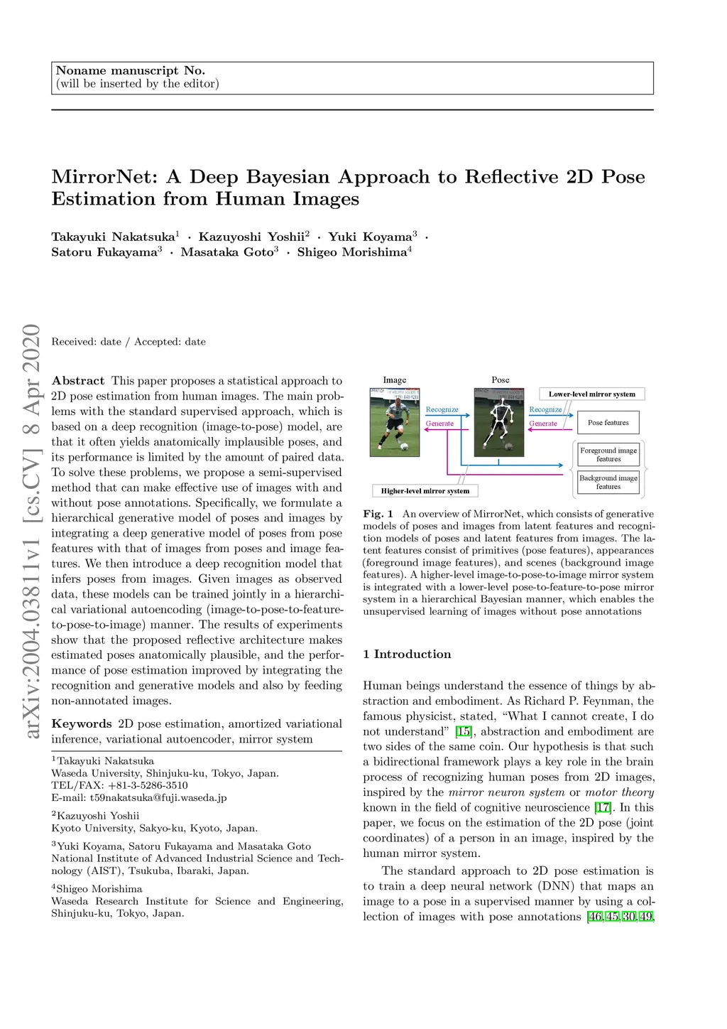 MirrorNet: A Deep Bayesian Approach to Reflective 2D Pose Estimation