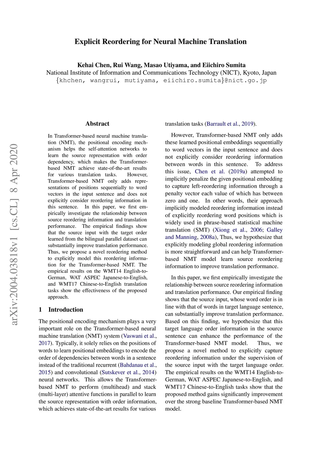 Explicit Reordering for Neural Machine Translation