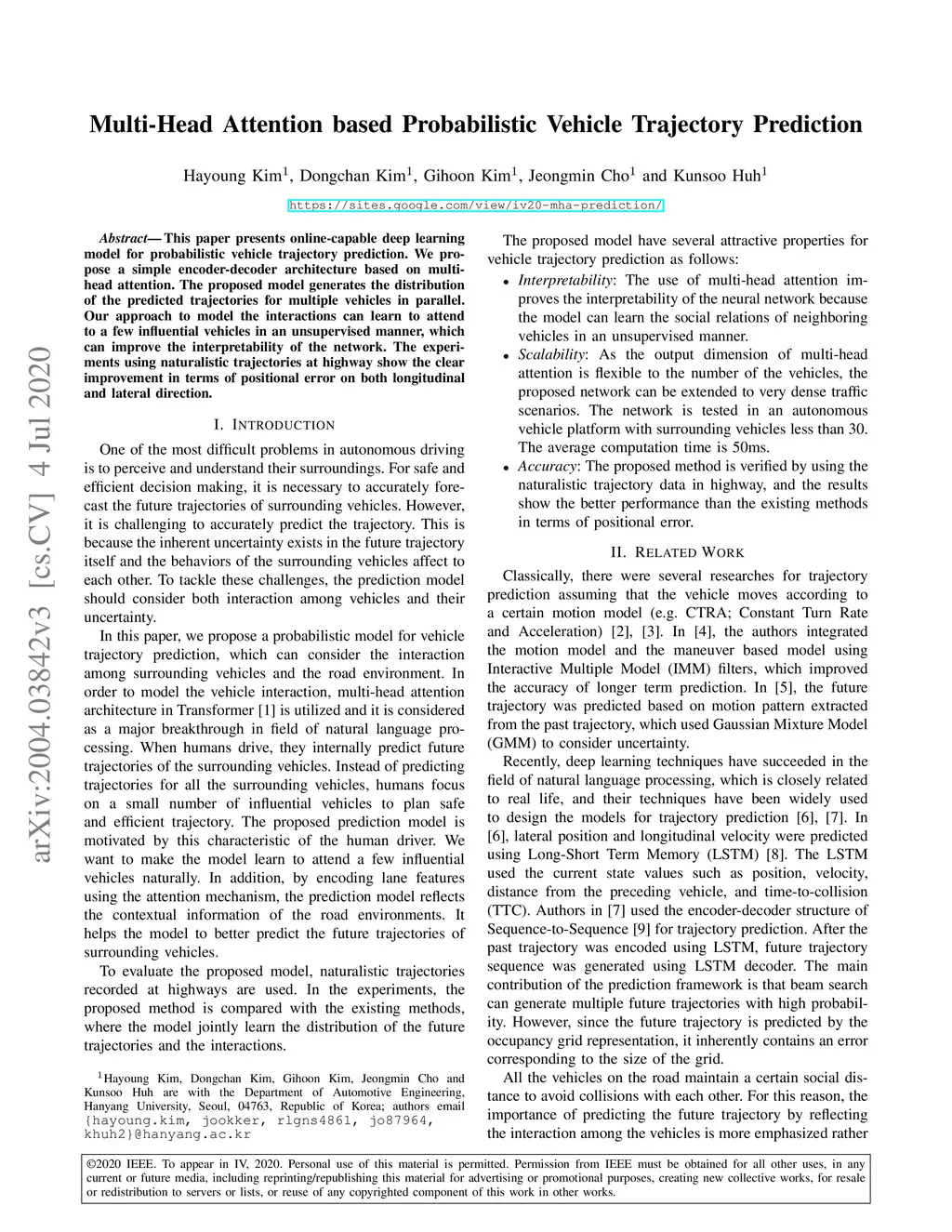 Multi-Head Attention based Probabilistic Vehicle Trajectory Prediction