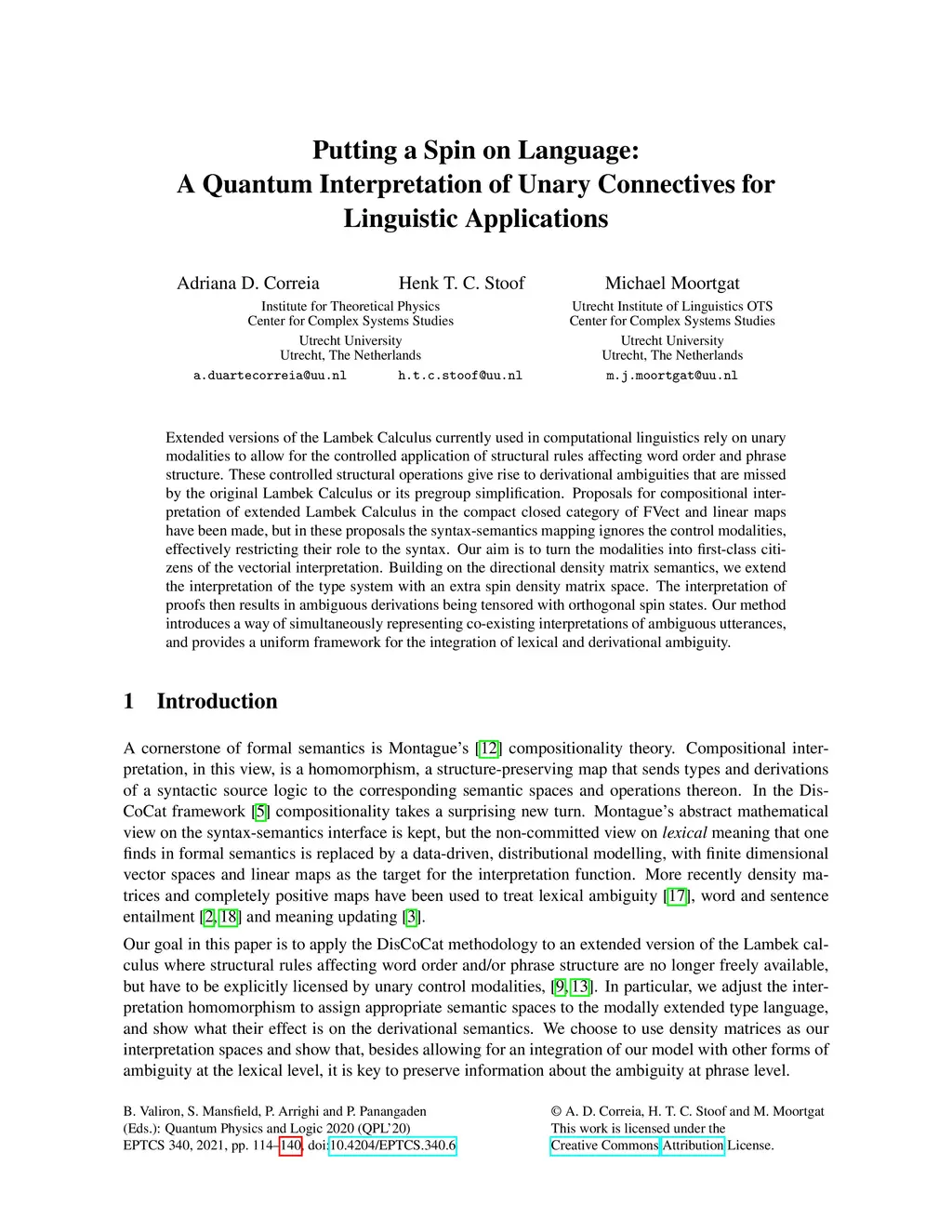 Extended versions of the Lambek Calculus currently used in computational linguistics rely on unary modalities to allow for the controlled application of structural rules affecting word order and phrase structure. These controlled structural operations give rise to derivational ambiguities that are missed by the original Lambek Calculus or its pregroup simplification. Proposals for compositional interpretation of extended Lambek Calculus in the compact closed category of FVect and linear maps have been made, but in these proposals the syntax-semantics mapping ignores the control modalities, effectively restricting their role to the syntax. Our aim is to turn the modalities into first-class citizens of the vectorial interpretation. Building on the directional density matrix semantics, we extend the interpretation of the type system with an extra spin density matrix space. The interpretation of proofs then results in ambiguous derivations being tensored with orthogonal spin states. Our method introduces a way of simultaneously representing co-existing interpretations of ambiguous utterances, and provides a uniform framework for the integration of lexical and derivational ambiguity.