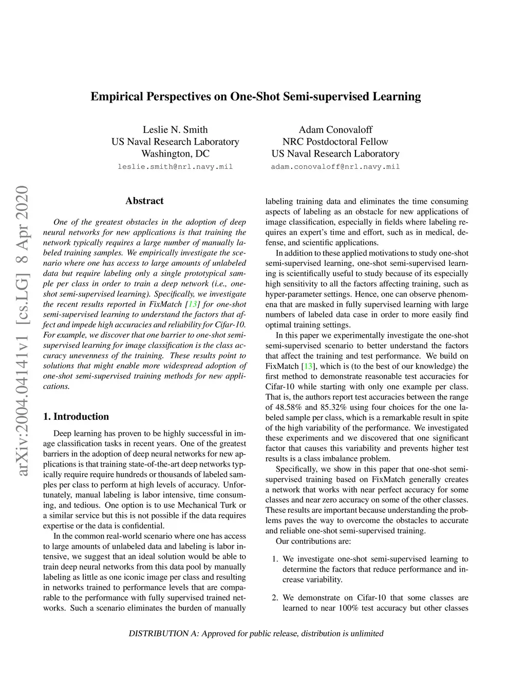 One of the greatest obstacles in the adoption of deep neural networks for new applications is that training the network typically requires a large number of manually labeled training samples. We empirically investigate the scenario where one has access to large amounts of unlabeled data but require labeling only a single prototypical sample per class in order to train a deep network (i.e., one-shot semi-supervised learning). Specifically, we investigate the recent results reported in FixMatch for one-shot semi-supervised learning to understand the factors that affect and impede high accuracies and reliability for one-shot semi-supervised learning of Cifar-10. For example, we discover that one barrier to one-shot semi-supervised learning for high-performance image classification is the unevenness of class accuracy during the training. These results point to solutions that might enable more widespread adoption of one-shot semi-supervised training methods for new applications.