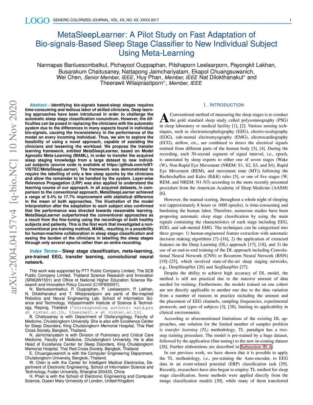 Sleep Stage Classifier to New Individual Subject Using Meta-Learning