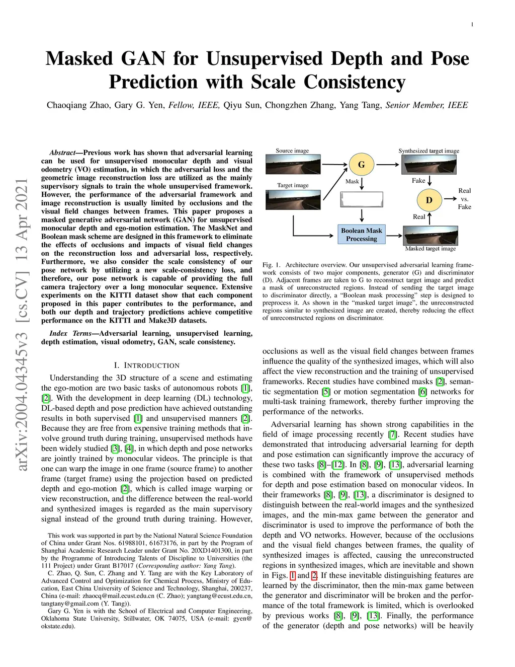 Masked GANs for Unsupervised Depth and Pose Prediction with Scale