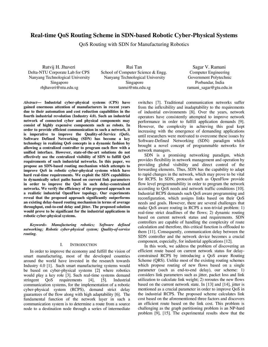 Real-time QoS Routing Scheme in SDN-based Robotic Cyber-Physical Systems