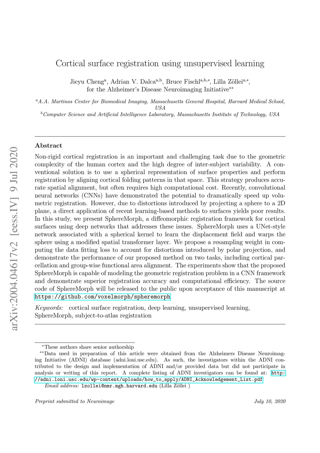 Non-rigid cortical registration is an important and challenging task due to the geometric complexity of the human cortex and the high degree of inter-subject variability. A conventional solution is to use a spherical representation of surface properties and perform registration by aligning cortical folding patterns in that space. This strategy produces accurate spatial alignment but often requires a high computational cost. Recently, convolutional neural networks (CNNs) have demonstrated the potential to dramatically speed up volumetric registration. However, due to distortions introduced by projecting a sphere to a 2D plane, a direct application of recent learning-based methods to surfaces yields poor results. In this study, we present SphereMorph, a diffeomorphic registration framework for cortical surfaces using deep networks that addresses these issues. SphereMorph uses a UNet-style network associated with a spherical kernel to learn the displacement field and warps the sphere using a modified spatial transformer layer. We propose a resampling weight in computing the data fitting loss to account for distortions introduced by polar projection, and demonstrate the performance of our proposed method on two tasks, including cortical parcellation and group-wise functional area alignment. The experiments show that the proposed SphereMorph is capable of modeling the geometric registration problem in a CNN framework and demonstrate superior registration accuracy and computational efficiency. The source code of SphereMorph will be released to the public upon acceptance of this manuscript at https://github.com/voxelmorph/spheremorph.