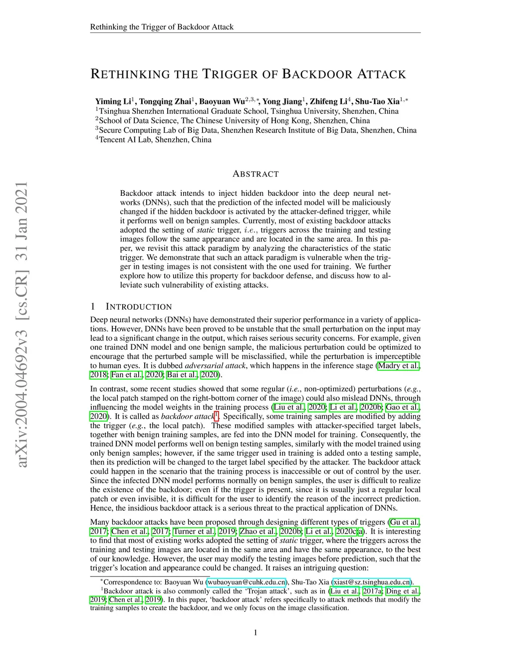 Backdoor attack intends to inject hidden backdoor into the deep neural networks (DNNs), such that the prediction of the infected model will be maliciously changed if the hidden backdoor is activated by the attacker-defined trigger, while it performs well on benign samples. Currently, most of existing backdoor attacks adopted the setting of \emph{static} trigger, triggers across the training and testing images follow the same appearance and are located in the same area. In this paper, we revisit this attack paradigm by analyzing the characteristics of the static trigger. We demonstrate that such an attack paradigm is vulnerable when the trigger in testing images is not consistent with the one used for training. We further explore how to utilize this property for backdoor defense, and discuss how to alleviate such vulnerability of existing attacks.