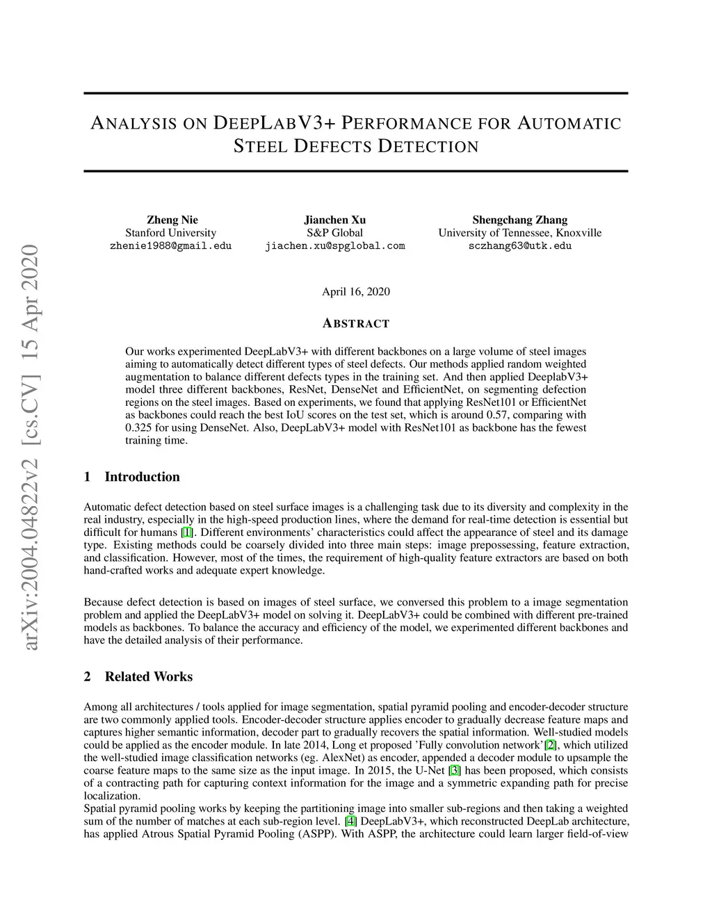 Analysis on DeepLabV3+ Performance for Automatic Steel Defects Detection