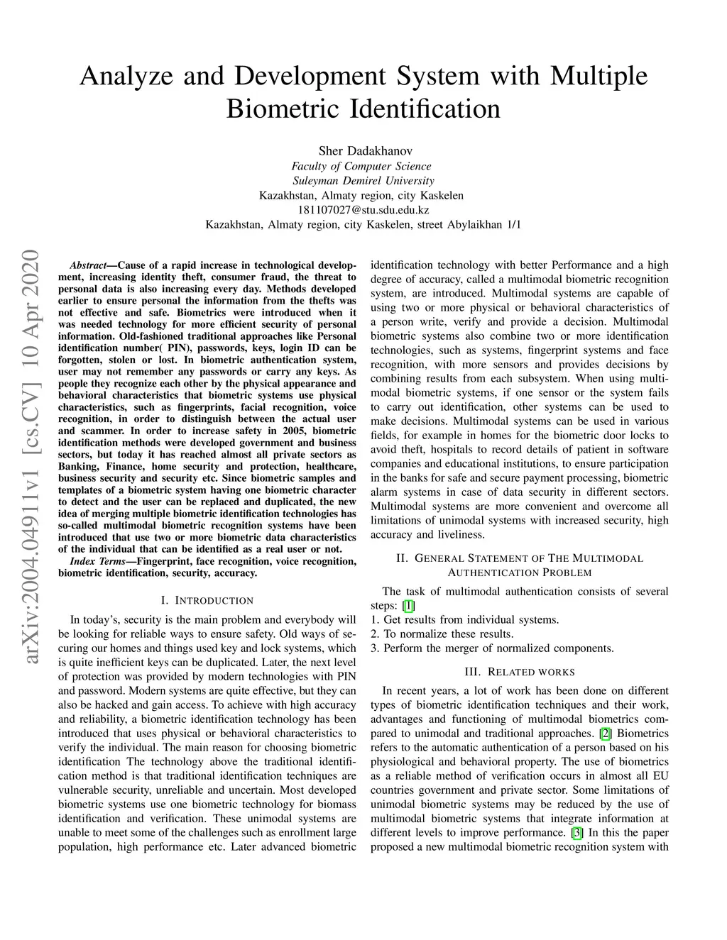 Cause of a rapid increase in technological development, increasing identity theft, consumer fraud, the threat to personal data is also increasing every day. Methods developed earlier to ensure personal the information from the thefts was not effective and safe. Biometrics were introduced when it was needed technology for more efficient security of personal information. Old-fashioned traditional approaches like Personal identification number( PIN), passwords, keys, login ID can be forgotten, stolen or lost. In biometric authentication system, user may not remember any passwords or carry any keys. As people they recognize each other by the physical appearance and behavioral characteristics that biometric systems use physical characteristics, such as fingerprints, facial recognition, voice recognition, in order to distinguish between the actual user and scammer. In order to increase safety in 2005, biometric identification methods were developed government and business sectors, but today it has reached almost all private sectors as Banking, Finance, home security and protection, healthcare, business security and security etc. Since biometric samples and templates of a biometric system having one biometric character to detect and the user can be replaced and duplicated, the new idea of merging multiple biometric identification technologies has so-called multimodal biometric recognition systems have been introduced that use two or more biometric data characteristics of the individual that can be identified as a real user or not.