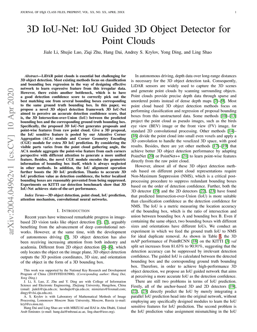 3D IoU-Net: IoU Guided 3D Object Detector for Point Clouds