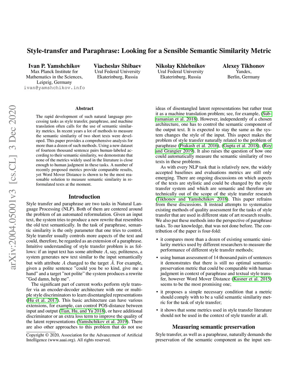 Style-transfer and Paraphrase: Looking for a Sensible Semantic