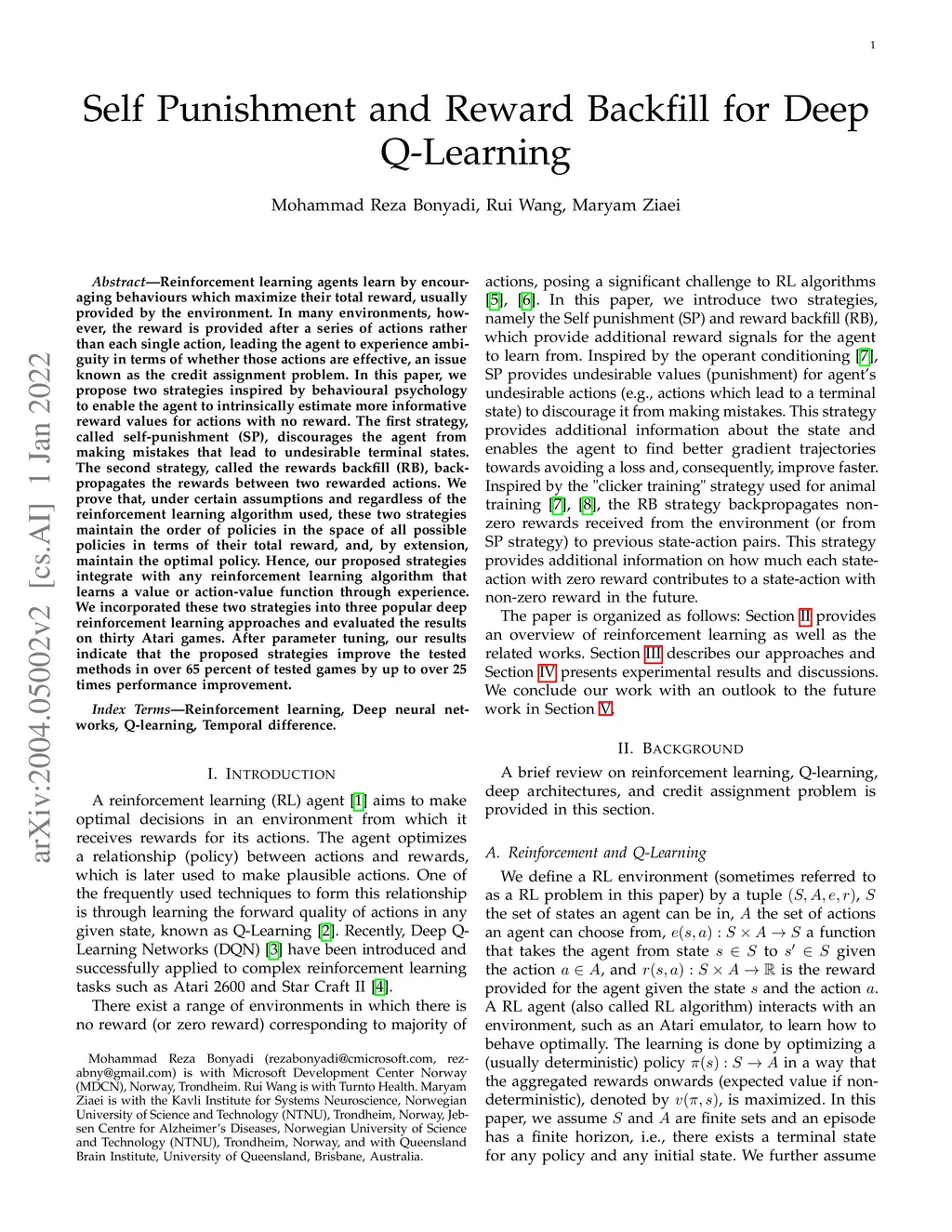 Self Punishment and Reward Backfill for Deep Q-Learning