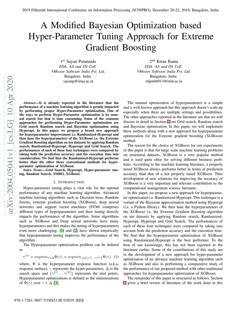 A Modified Bayesian Optimization based Hyper-Parameter Tuning Approach