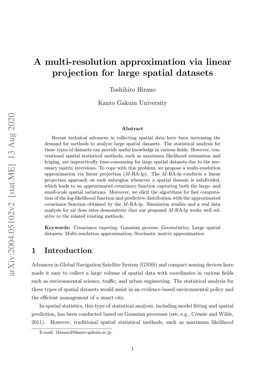 Recent technical advances in collecting spatial data have been increasing the demand for methods to analyze large spatial datasets. The statistical analysis for these types of datasets can provide useful knowledge in various fields. However, conventional spatial statistical methods, such as maximum likelihood estimation and kriging, are impractically time-consuming for large spatial datasets due to the necessary matrix inversions. To cope with this problem, we propose a multi-resolution approximation via linear projection (-RA-lp). The -RA-lp conducts a linear projection approach on each subregion whenever a spatial domain is subdivided, which leads to an approximated covariance function capturing both the large- and small-scale spatial variations. Moreover, we elicit the algorithms for fast computation of the log-likelihood function and predictive distribution with the approximated covariance function obtained by the -RA-lp. Simulation studies and a real data analysis for air dose rates demonstrate that our proposed -RA-lp works well relative to the related existing methods.