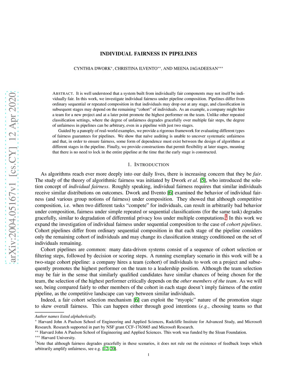 It is well understood that a system built from individually fair components may not itself be individually fair. In this work, we investigate individual fairness under pipeline composition. Pipelines differ from ordinary sequential or repeated composition in that individuals may drop out at any stage, and classification in subsequent stages may depend on the remaining "cohort" of individuals. As an example, a company might hire a team for a new project and at a later point promote the highest performer on the team. Unlike other repeated classification settings, where the degree of unfairness degrades gracefully over multiple fair steps, the degree of unfairness in pipelines can be arbitrary, even in a pipeline with just two stages. Guided by a panoply of real-world examples, we provide a rigorous framework for evaluating different types of fairness guarantees for pipelines. We show that na\"{i}ve auditing is unable to uncover systematic unfairness and that, in order to ensure fairness, some form of dependence must exist between the design of algorithms at different stages in the pipeline. Finally, we provide constructions that permit flexibility at later stages, meaning that there is no need to lock in the entire pipeline at the time that the early stage is constructed.