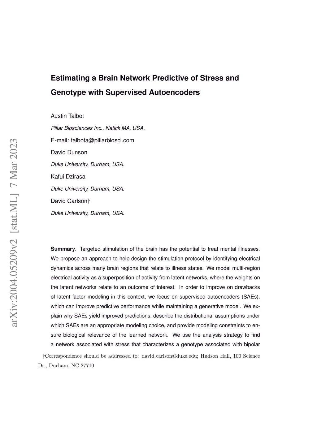 Targeted stimulation of the brain has the potential to treat mental illnesses. We propose an approach to help design the stimulation protocol by identifying electrical dynamics across many brain regions that relate to illness states. We model multi-region electrical activity as a superposition of activity from latent networks, where the weights on the latent networks relate to an outcome of interest. In order to improve on drawbacks of latent factor modeling in this context, we focus on supervised autoencoders (SAEs), which can improve predictive performance while maintaining a generative model. We explain why SAEs yield improved predictions, describe the distributional assumptions under which SAEs are an appropriate modeling choice, and provide modeling constraints to ensure biological relevance of the learned network. We use the analysis strategy to find a network associated with stress that characterizes a genotype associated with bipolar disorder. This discovered network aligns with a previously used stimulation technique, providing experimental validation of our approach.