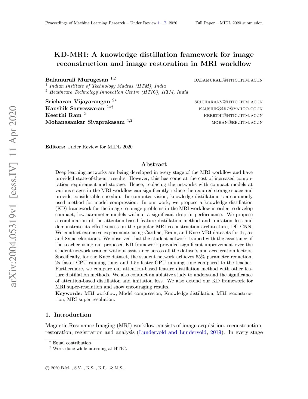 KD-MRI: A knowledge distillation framework for image reconstruction and