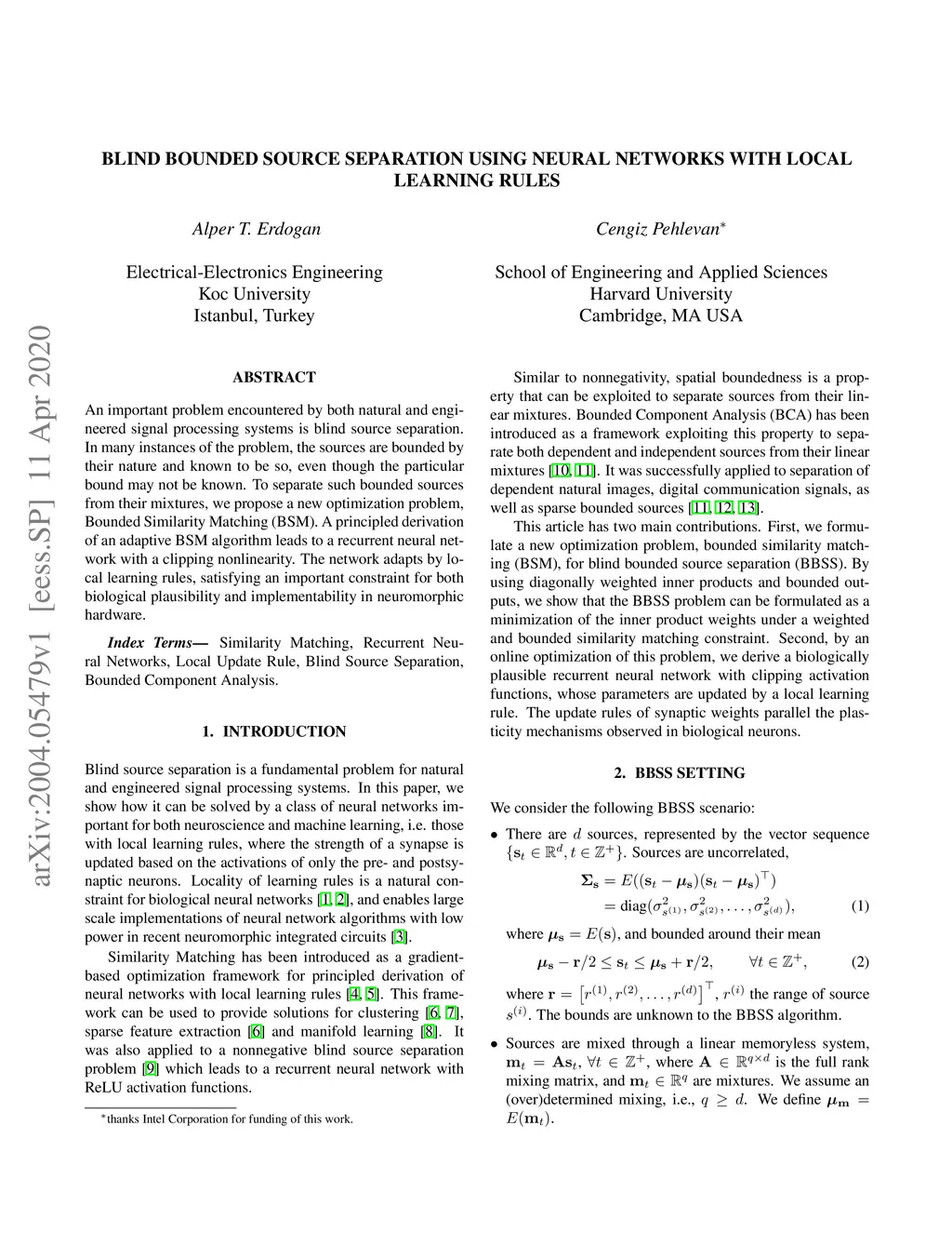An important problem encountered by both natural and engineered signal processing systems is blind source separation. In many instances of the problem, the sources are bounded by their nature and known to be so, even though the particular bound may not be known. To separate such bounded sources from their mixtures, we propose a new optimization problem, Bounded Similarity Matching (BSM). A principled derivation of an adaptive BSM algorithm leads to a recurrent neural network with a clipping nonlinearity. The network adapts by local learning rules, satisfying an important constraint for both biological plausibility and implementability in neuromorphic hardware.