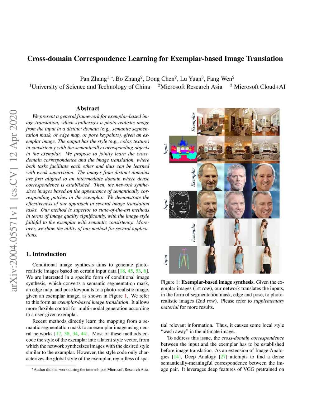 Cross-domain Correspondence Learning for Exemplar-based Image