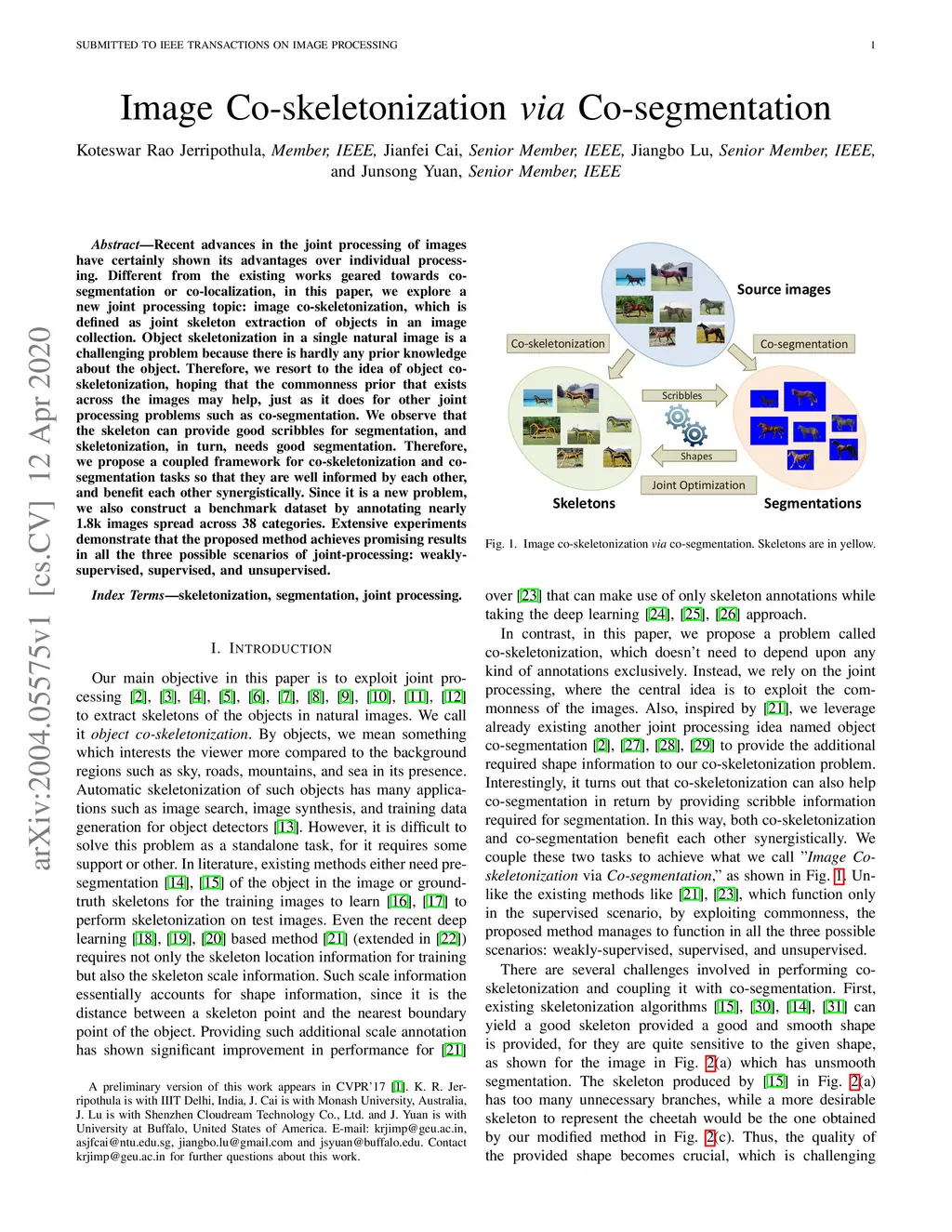 Image Co-skeletonization via Co-segmentation