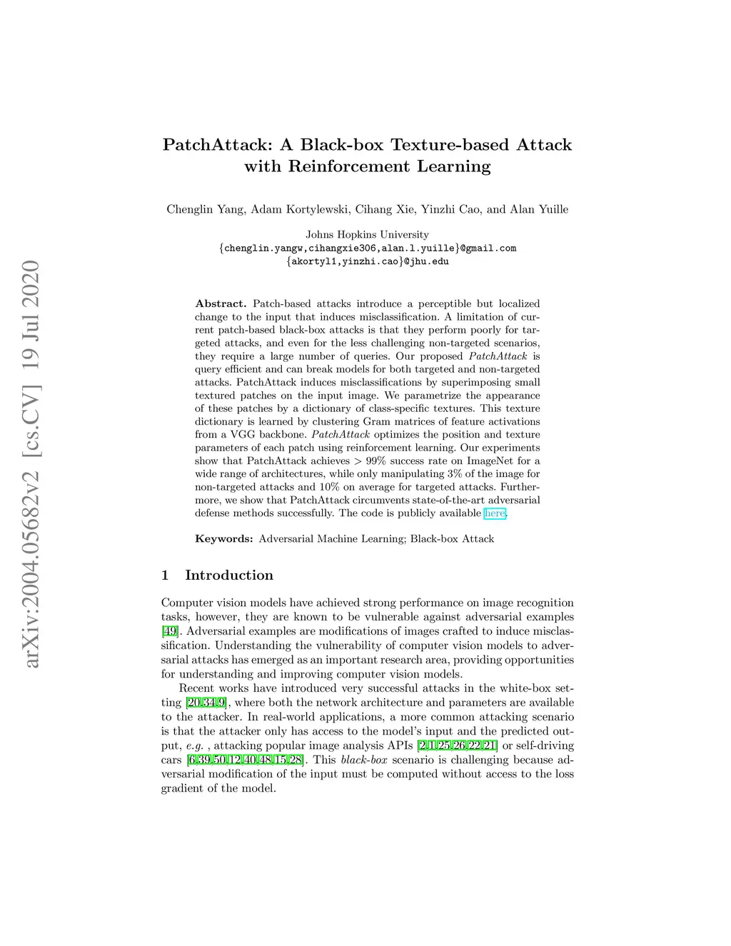 PatchAttack: A Black-box Texture-based Attack with Reinforcement