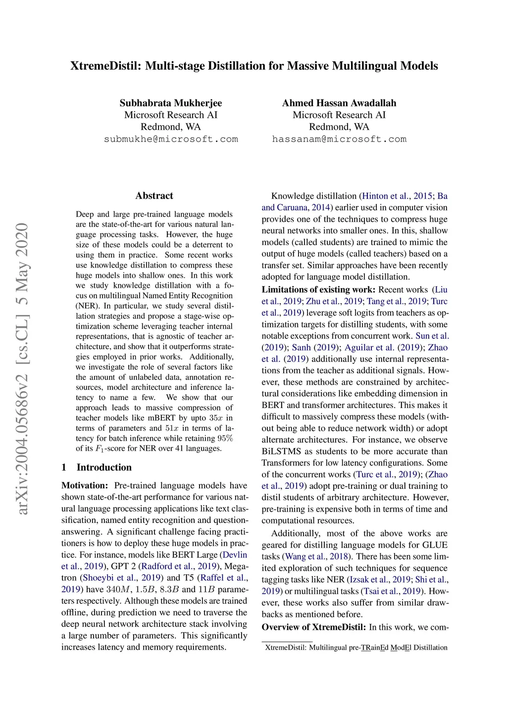 XtremeDistil: Multi-stage Distillation for Massive Multilingual Models