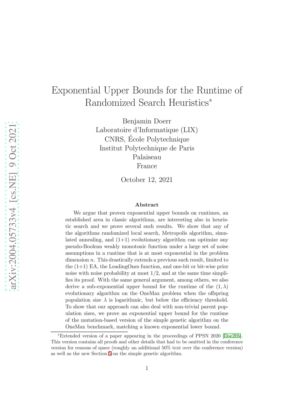 We argue that proven exponential upper bounds on runtimes, an established area in classic algorithms, are interesting also in heuristic search and we prove several such results. We show that any of the algorithms randomized local search, Metropolis algorithm, simulated annealing, and (1+1) evolutionary algorithm can optimize any pseudo-Boolean weakly monotonic function under a large set of noise assumptions in a runtime that is at most exponential in the problem dimension~. This drastically extends a previous such result, limited to the (1+1) EA, the LeadingOnes function, and one-bit or bit-wise prior noise with noise probability at most , and at the same time simplifies its proof. With the same general argument, among others, we also derive a sub-exponential upper bound for the runtime of the evolutionary algorithm on the OneMax problem when the offspring population size is logarithmic, but below the efficiency threshold. To show that our approach can also deal with non-trivial parent population sizes, we prove an exponential upper bound for the runtime of the mutation-based version of the simple genetic algorithm on the OneMax benchmark, matching a known exponential lower bound.