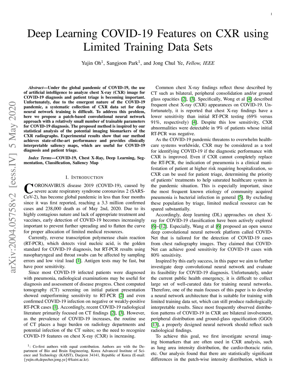Deep Learning COVID-19 Features on CXR using Limited Training Data Sets