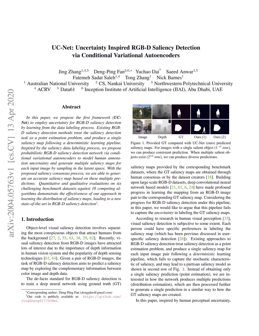 UC-Net: Uncertainty Inspired RGB-D Saliency Detection via Conditional