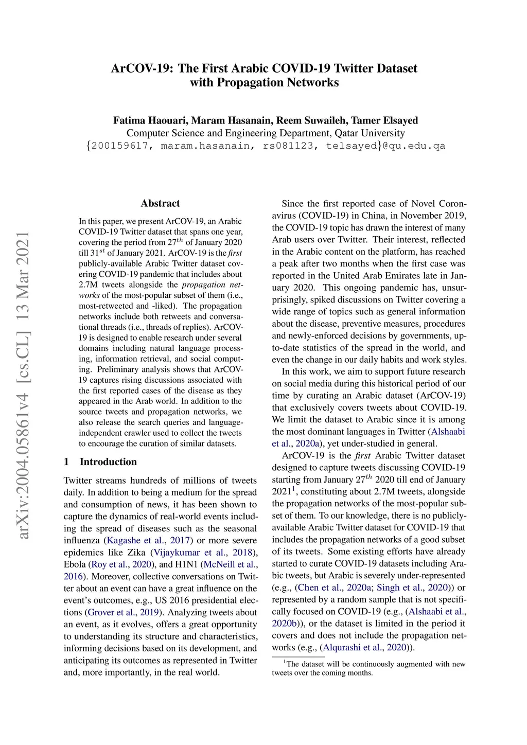 ArCOV-19: The First Arabic COVID-19 Twitter Dataset with Propagation