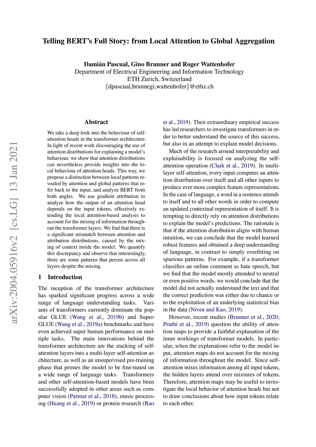 Telling BERT's full story: from Local Attention to Global Aggregation