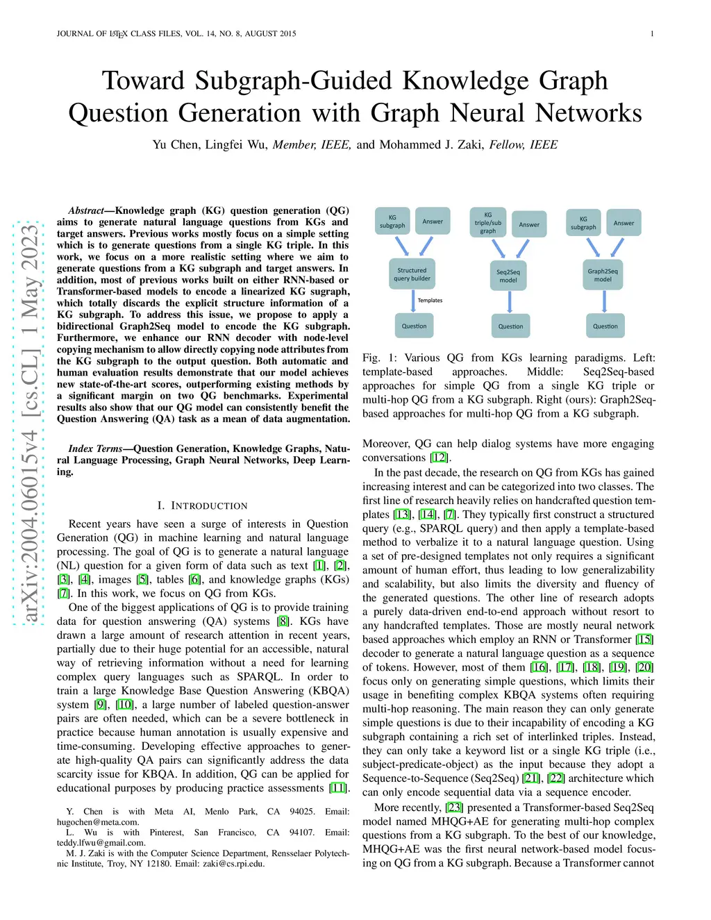 Toward Subgraph-Guided Knowledge Graph Question Generation with Graph